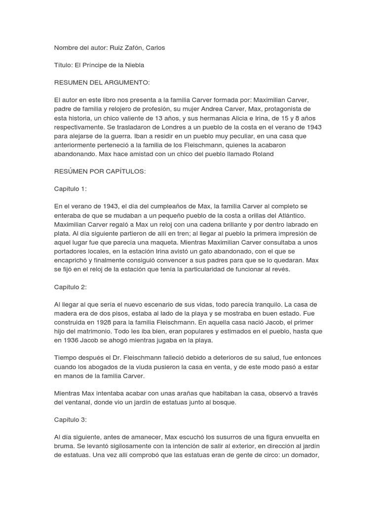Resumen de El Príncipe de la Niebla Introducción En verano de 1943 en plena Segunda Guerra Mundial Max cumple 13 años. Alicia de 15 años e Irina de ocho. Gregorio de la Fuente Nº 3143 Macul Fono. Mis ganas de conocer me llevan a trabajar en todas las áreas de compañías de todos los tamaños hasta que la crisis financiera de 2008 tercera crisis global me conduce hasta mi parada actual inmerso en la profunda transformación de la movilidad las ciudades y el urbanismo y.
